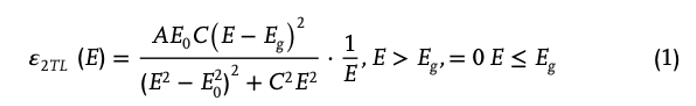 trong đó, A là biên độ dao động, E0 là vị trí đỉnh của dao động, E là năng lượng, C đặc trưng cho bề rộng đỉnh và Eg là năng lượng vùng cấm (band gap).